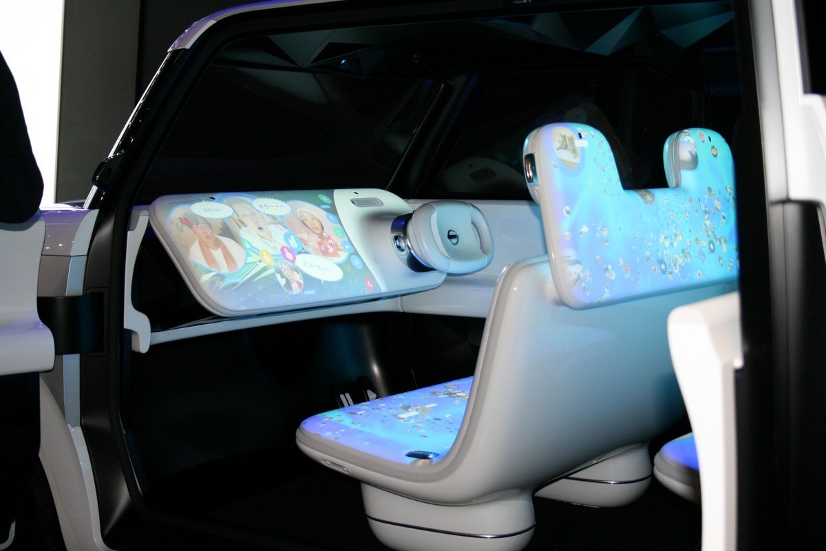 Teatro for Dayz's plain exterior, too, serves as a canvas for ideas. It's outfitted with LED screens that enable further self-expression. Any experience in or around the car can be shared instantly via an onboard camera. All the while, the EV battery keeps smartphones and other devices juiced up.