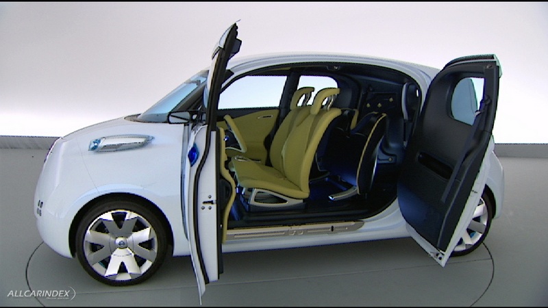 The car is decidedly more van-like with its split rear doors. The rear features back lights on the right, a number plate on the left, and a rear-door handle set into a concave surface . Viewed from above the car's space-maximising rectangular footprint flows into an elliptical roof, offering more graceful lines as well as increased aerodynamic efficiency.