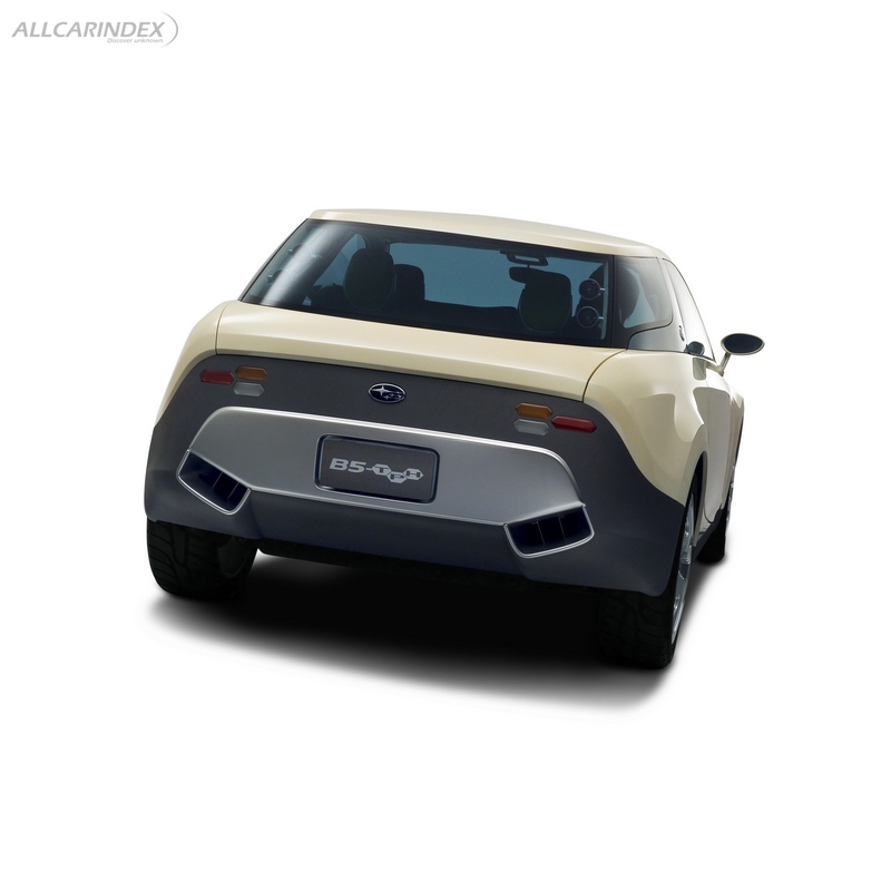 The design of the B5-TPH concept car has progressed from the basic form of the Subaru Outback, a crossover sport utility vehicle that combines the rugged versatility of an SUV and the sporty handling and comfort of a passenger car. The new sporty 2-door coupe features a streamlined coupe wagon style body and incorporates design elements that ensure versatile driving capabilities without any limitation. Despite its elegant profile, the car also expresses powerful drive train performance in its styling, which is conceived on the theme of a new-generation crossover vehicle with an environmentally friendly, hybrid power unit, widening the scope of driving opportunities in harmony with nature. A minimum road clearance of 200 mm and large-diameter tires are practical design features that heighten superb stability and drivability.