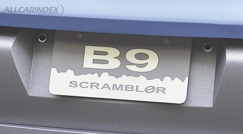 Supervised by the Chief Designer at Subaru's Advanced Design section Andreas Zapatinas, the B9 Scrambler's styling follows the Subaru B11S introduced at this year's Geneva Show, and is a design study to obtain Subaru's at-a-glance styling identity. The styling, free from stereotypes regarding body dimensions and tire sizes and existing limitations, is advanced yet give somewhat familiar feelings. The design elements found on the B9 Scrambler suggest Subaru's design trends in the 21st century. The face design utilizing air intake and wing motif suggests Subaru's heritage as an aircraft manufacturer. The large wheels and wheel arches indicate superb performance. The side view featuring wedge shape stirs the driver's blood. The interior, especially the dashboard is unified with the motif of wings.