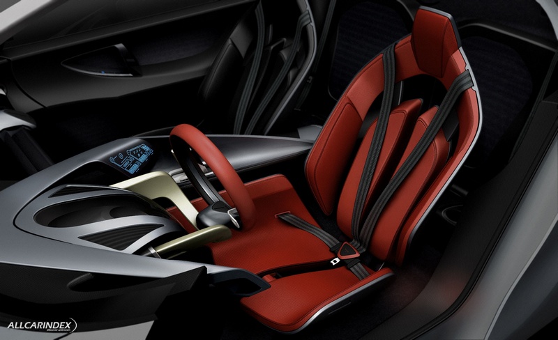 The driver-oriented interior was created by CALTY designer, William Chergosky and exudes sleekness, technology, and performance. The lean skeletal look is achieved with exposed cross-car architecture and high-tech materials such as carbon fibre, and titanium.