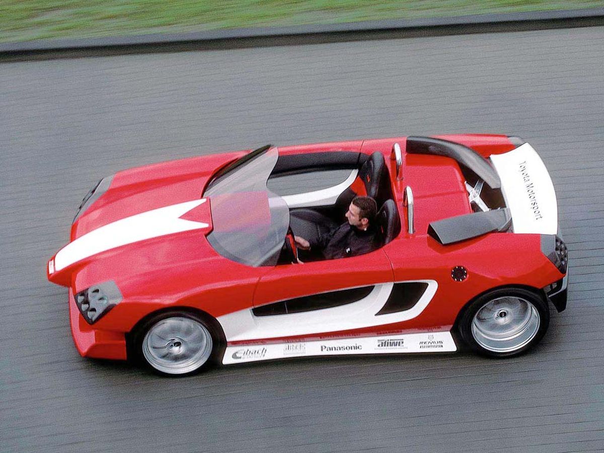 A full-width wing further enhances the F1 look that's mounted close to the ground, complete with upturned endplates. There are no doors. At least, not in the conventional sense. Instead, the upper body sides hinge skywards to provide access to a snug two-seat interior. You sit low in the car, the high sides conveying an impressive sense of security despite the lack of side protection. The specially developed engine is a heady 258bhp - some 120bhp more than the standard MR2. The Toyota Street Affair fires on the first turn of its key. I tell you this because, unlike so many concept cars, this one has a real engine lurking beneath its wild exterior.