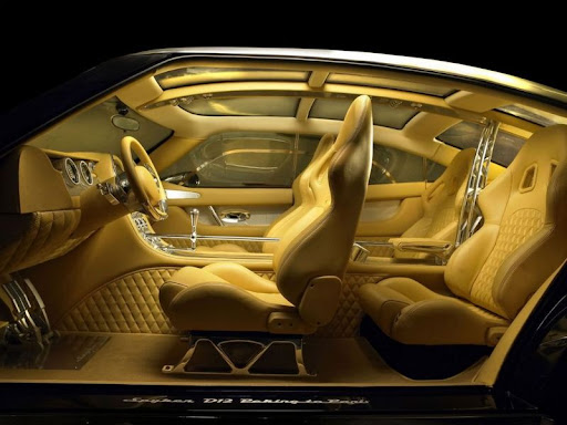 The Spyker D12 Peking-to-Paris is an all aluminium, permanent four-wheel drive super sports utility vehicle. The rear doors are rear-hinged coach doors, so-called ‘suicide doors'. It is powered by the 6.0 litre, 12 cylinder, 500 bhp W12 engine from Volkswagen AG and accelerates from 0-100 KM (0-60 MPH) in 5.0 seconds. The six-speed automatic transmission features a multifunctional steering wheel with F1 style shift paddles, a triple dashboard designed in the style of an airplane cockpit, and a sumptuous interior. The vehicle has an all aluminium body fitted to an aluminium space frame, and sits on 24' Aeroblade ™ wheels. It has a length of 4.95 m, a width of 2.0 m excluding mirrors, a minimum height of 1.68 m and a maximum height of 1.77 m and weighs 1895 Kg. The fuel tank capacity is 100 litres (22 gallons). Top speed is 295 km/h (185 mph). The car is custom-hand built using only the best materials available.