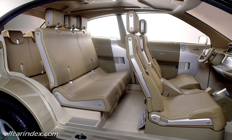 Its exterior design is unusually clean and well resolved for a Korean concept car. At the front a dark grey graphical theme is carried over from the Kalos of Frankfurt 2001 and integrates into the three part Daewoo grille in a similar way to that of the Mirae Daewoo concept car of 1998 – a car with which the Flex shares its ‘girder’ spoke wheels. The A-pillars lift proud of the windscreen base which softens the car’s ‘one and a half box’ profile, and then sweep up in several subtly integrated arcs to give the DLO a single upper curve.