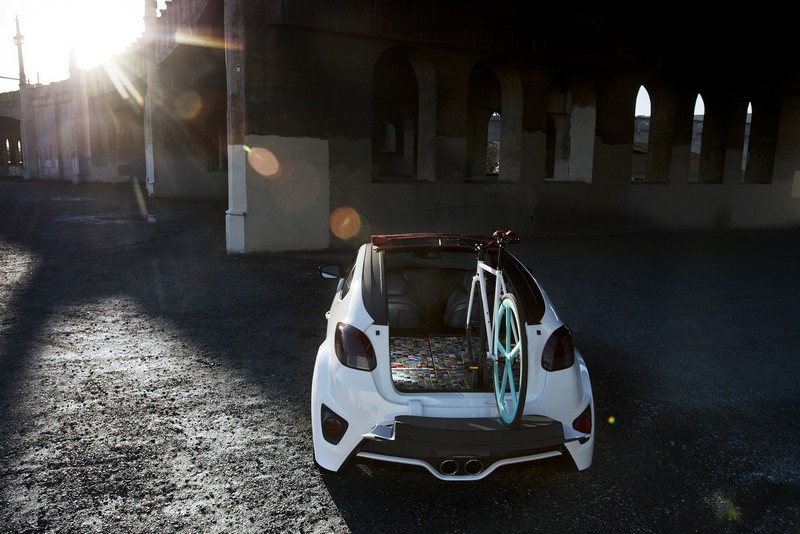The color palette chosen for the Veloster C3 Roll Top concept was influenced by the emerging fixed gear bicycle culture. The design team felt the C3 needed an urban color combination.