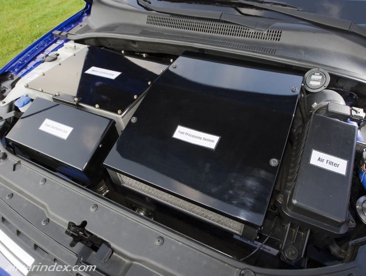 The Sportage FCEV is equipped with hydrogen-powered fuel cells from UTC Fuel Cells of Hartford, Connecticut and a next generation hybrid-electric drive train, motor and control unit from Enova Systems of Torrance, California.