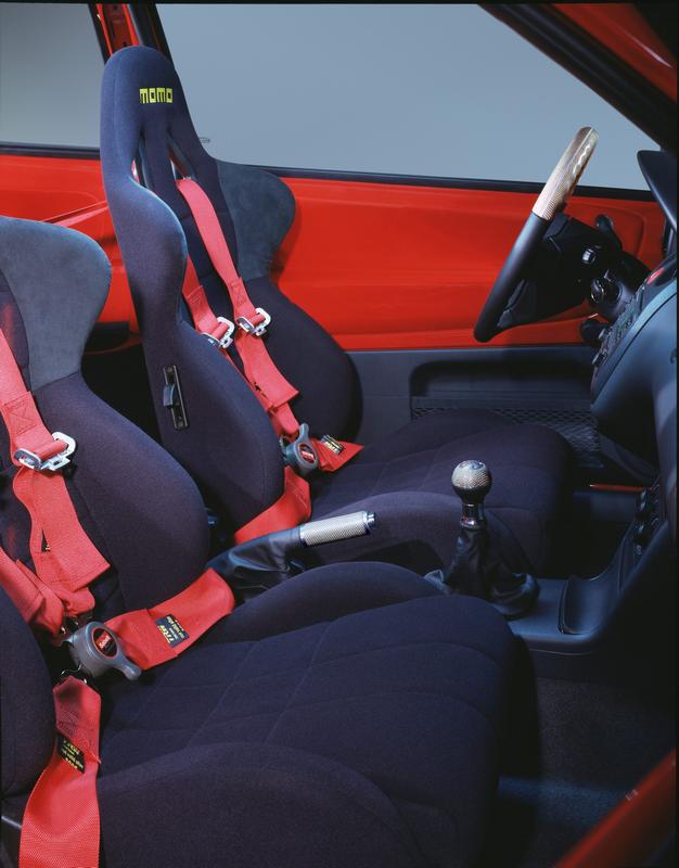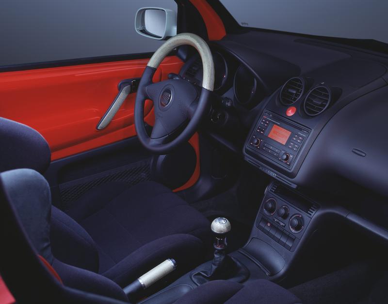 The interior owes more to the world of motor sport than to a city car. Two fully adjustable bucket SEATs are equipped with four point racing-type safety harnesses giving a clear indication of the Arosa Racer’s intentions.