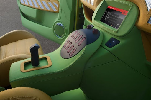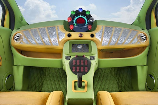 The “UC?” also features a number of technical highlights: Goodbye steering wheel, hello force-feedback joystick. The new joystick technology is supplied by German electronics specialist Rafi. Rinderknecht says: “Forget everything you have learned about joysticks so far. Finally this system provides a better steering feel and clear feedback from the road.” The entire car is operated via Space Drive, a drive-by-wire system developed by Paravan, one of the leading manufacturers of handicap vehicles. Rinspeed and its partners had to master numerous challenges surrounding the electric drive system: The lithium-ion batteries come from Li-Tec-Battery in Germany, a joint venture of Evonik and Daimler AG. The efficient and reliable on-board charger is supplied by specialist Absaar; the external stationary charger comes from ABB Sécheron. Axpo Holding is yet another energy company that partnered with Rinspeed on this project. The electric heater and sphere-shaped vents were installed by the specialists from Eberspächer. Rinspeed also received support from the consortium Swiss Coop, which promotes decisive action and zero-emission mobility, and from the power plants of the Canton of Zurich that provide electricity and the required infrastructure. To save as much energy as possible the developers have placed highest priority on lightweight design: Ticona, one of the world’s leading manufacturers of engineering polymers, plays a major part in achieving this objective. The lightweight lift gate comes from Rehau, an OEM supplier for the automotive industry. The P7 Cinturato ‘Green Tires’ from Pirelli in size 195/40 R 17 are mounted on special lightweight rims from German-Austrian manufacturer AEZ. The delicate-looking rims weigh just 6.2 kilograms each. Eco-friendly lubricants are provided by Motorex. And of course the electric “love bug” has a number of features that will stir up emotions: An immediate eye-catcher is the paint that changes color from yellow to green. The paint was supplied by Akzo Nobel, one of the world’s largest paint manufacturers. A new adhesive paint called “Stickerfix” is perfect for touching up minor cosmetic paint blemishes sustained on the road. The jazzy leather interior including aluminum inlays and a custom leather suitcase for the roof come from specialist Sellner Group. VDO Continental Automotive has designed a new futuristic instrument cluster for the “UC?” The new cluster also houses a Swiss-made mechanical watch from Swiss premium manufacturer Carl F. Bucherer. A beautiful crystal ‘tank lid’ from Swarovski covers the necessary 230-volt plug. A stylized laser-cut coil filament embedded in the crystal lid serves as a battery charge indicator: red=empty, orange=half charged, green=fully charged. Rinspeed wants to change the electric drive’s image: The “E” signifying the electric drive isn’t shamefully hidden but displayed openly and proudly: “Look here, I drive with electric power”.