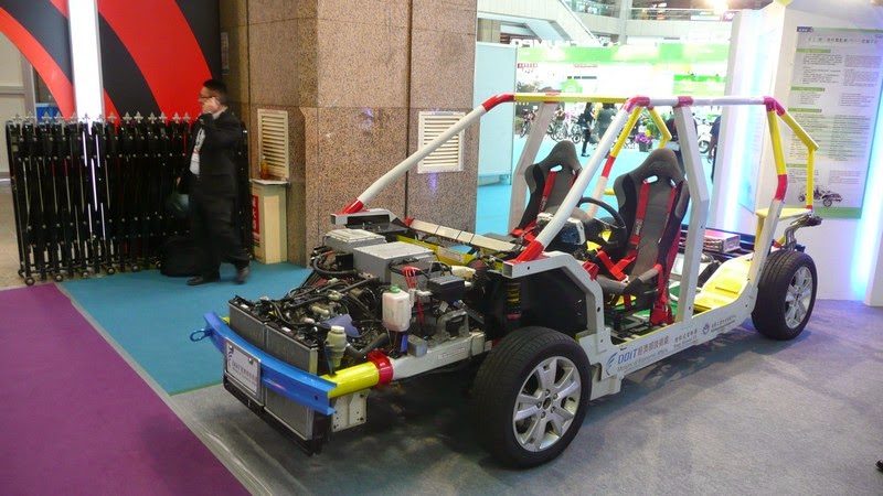 The MIRDC EV3 on display at the Taiwan EV Show is a 4.5-metre long front-drive car, without exterior body panels, the size of a mid-sized European hatchback. The space-frame chassis weighs only 203kg, helping to keep overall weight down to 930kg, and is said to cut production costs by 30% compared with a conventional monocoque car.