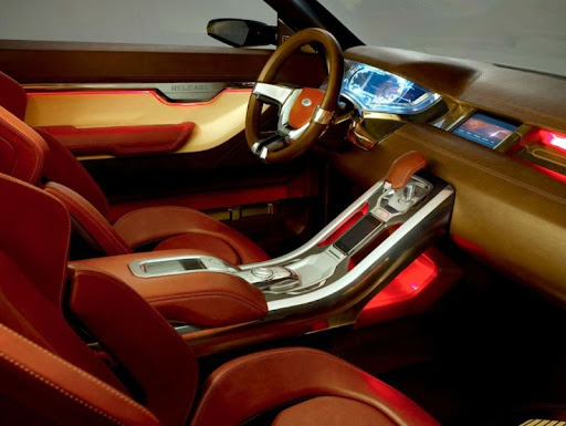 The ‘fast’ sloping architecture of the center console reflects LRX’s sporty dynamics, as does the distinctive binnacle over the instrument cluster. The electronic display uses ‘floating’ LCD graphics to create a three-dimensional look that can be personalized for different drivers, as well as interacting with LRX’s touch-screen display.
