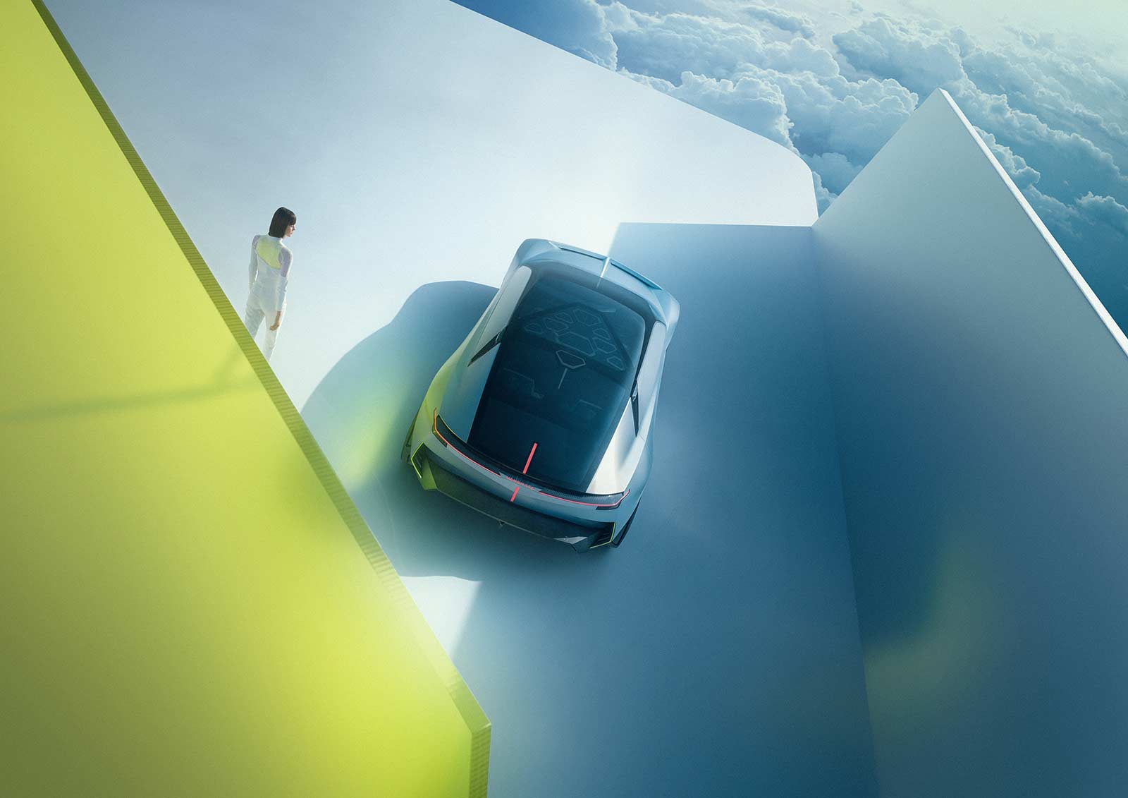 The floating, transparent Pure Pad sits ahead of the front armrest. It can be configured according to the driver’s personal preferences, thus allowing instant access to the most frequently used controls.