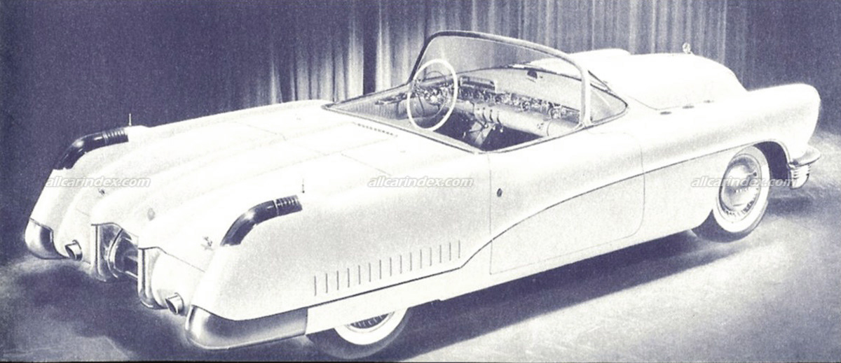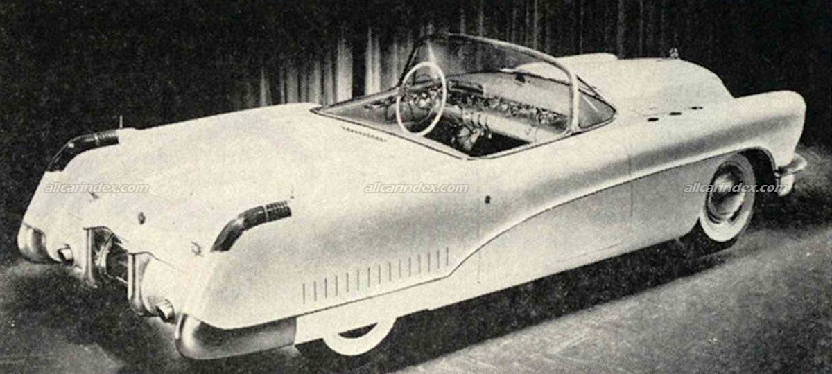 Built as first of two concept cars, the Wildcat was a boulevard cruiser showcasing GM's new drive-line developments.A highlight of the Wildcat was its pioneering Fibreglas body. The same technology was used later in the year to develop the first 1953 Corvette.Stylistic features of the Wildcat included a huge front grill with buffer bomb guards, prominent rear tail fins with build-in lights and a wrap-around front windshield.The Wildcat showcased GM's new Fireball 215 cu.in. V8 that could produce up 188 bhp. This all-aluminum engine turned out to be useful during the fuel crisis of 1956 and was later sold to Rover. In the concept car, this was mated to a new version of GM's torque converter called the Twin Turbine Dynaflow Drive.A unique feature of the car was its front hubcaps which incorporated a technology called 'roto-static brake cooling discs'. These used a cooling duct on the wheel that remained stationary to provide a fresh flow of air to the front brakes.In 1954, a Wildcat II sports car concept was released as a possible companion to the Corvette. A second series of GM concept cars also adopted the Wildcat name in the mid eighties.