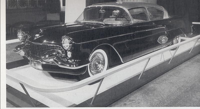 Unlike Cadillac's other two futuristic cars from 1954, the La Espada and El Camino, which have dual headlights and tail lights, the Park Avenue, in keeping with its restrained functionalism, has two sealed beam chrome bezeled lamps protruding slightly from the forward tilted line of the integrally rounded sweep of fenders and hood.