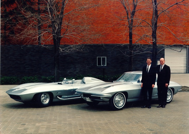 The Corvette Stingray was a privately funded concept car that formed a basis for the second (C2) generation Corvette Sting Ray. The Stingray racer-concept car was designed by Bill Mitchell, GM Vice President of styling, and Larry Shinoda in 1957. The basis of the Stingray was the 1957 Corvette SS, an engineering test mule chassis for the creation of an official Chevrolet race effort culminating with the 24 Hours of LeMans. Soon after its race debut, the Automobile Manufacturers Association (AMA) banned manufacturer-sponsored racing, and the SS had been relegated to test track duty. The Stingray exists today with a 327 cubic inch (5.4 L), fuel-injected V-8 of 375 hp (280 kW)