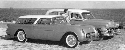 The Nomad combined the sleek styling of a sports car with the versatility of station wagon. Built with a “glass fiber reinforced plastic” body, the Nomad was two-door with space for six passengers. It was built on modified 115-inch Chevrolet wagon chassis to give it the extra space necessary for this seating capacity. The Nomad also had an electrically operated rear window that automatically retracted into the tailgate when unlocked or could be remotely controlled by a button on the instrument panel. The Nomad was most lauded of the three Corvette dream cars for 1954. A larger version of this concept appeared for the 1955 model year and the nameplate would appear on concepts in the late 1990s and 2000s.