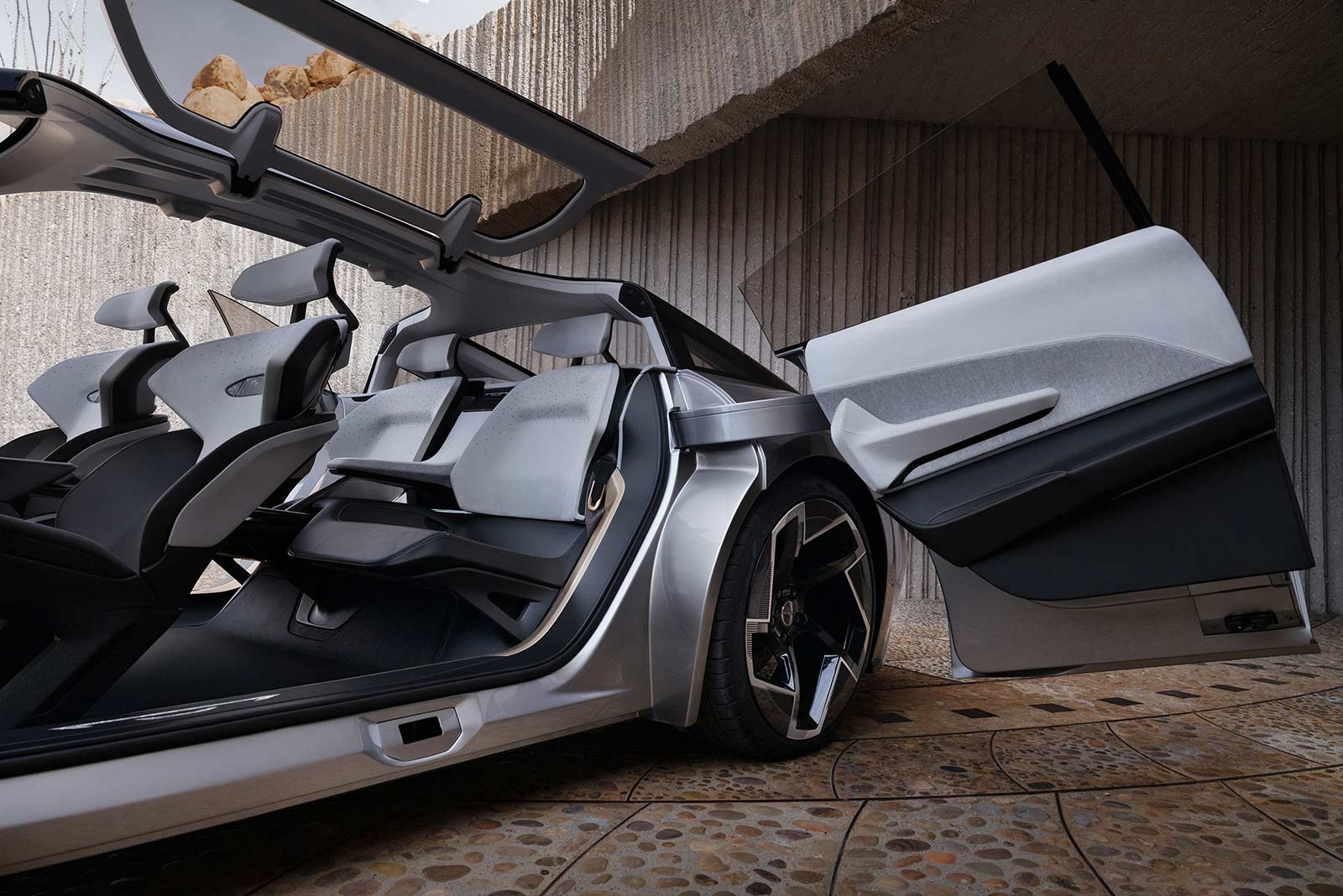 - Butterfly-hinged canopy and red-carpet-style side doors work in symphony to create an open-air feel and provide easy access in and out of the vehicle