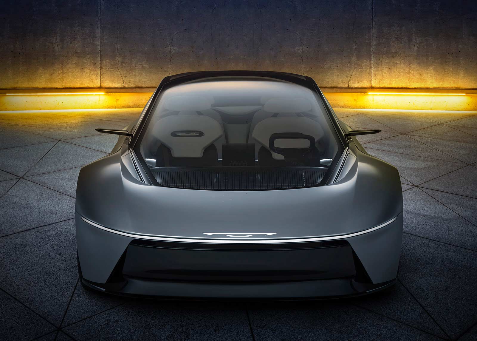- Halcyon Concept’s dramatic proportions create a low-to-the-ground profile with a front air blade aerodynamic pass-through that enhances performance and all-important BEV range capability