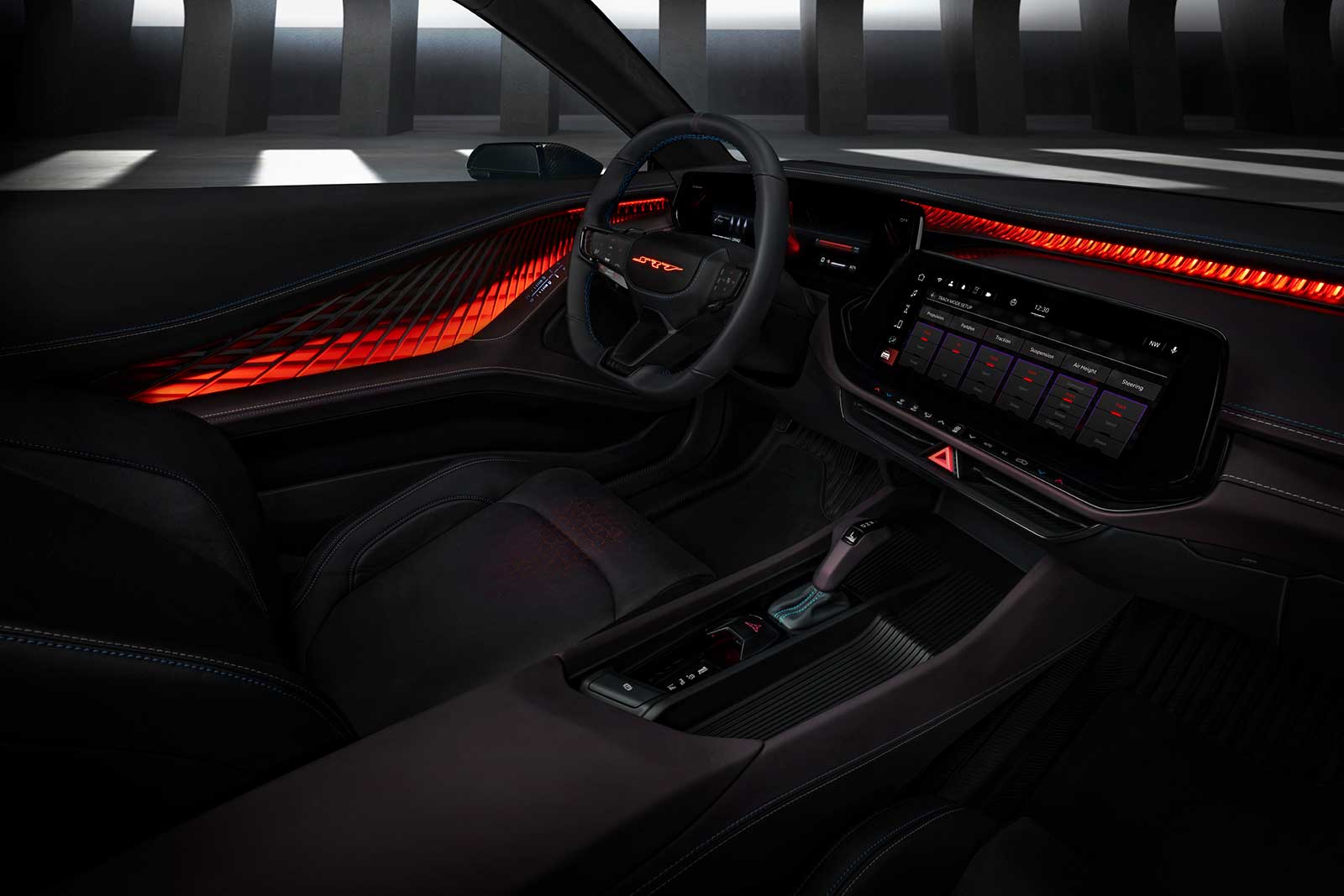 The Charger Daytona SRT Concept’s cockpit immerses the driver’s sensory experience through performance sounds, lighting features and vehicle displays.