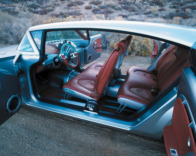 Adding emphasis to the concept's retro-look, the front and rear cabins feature bench seats, which are anchored to the floor at the ends and slide independently along a custom rail system. The bench seats, along with the absence of a B-pillar, enhance the concept's spaciousness and create an open, social interior atmosphere.