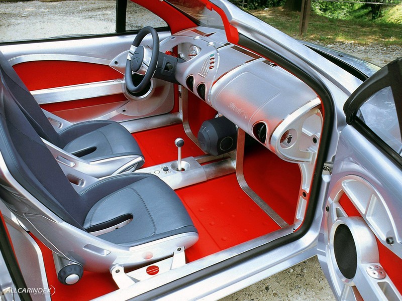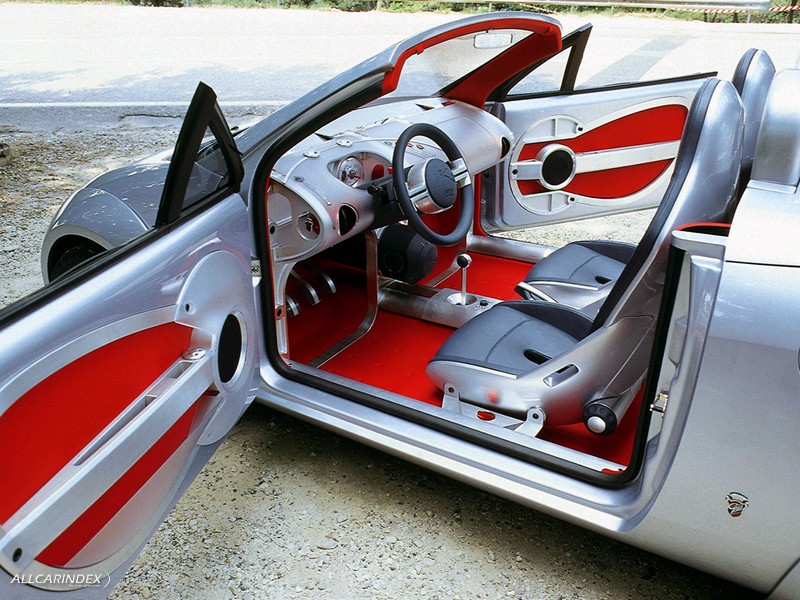 The interior features two, racing style bucket seats trimmed in dark blue leather. The instrument panel is made of a translucent plastic material with anodized aluminum accents and features adjustable gauges giving the driver the flexibility to switch from urban driving to track racing in a matter of minutes.