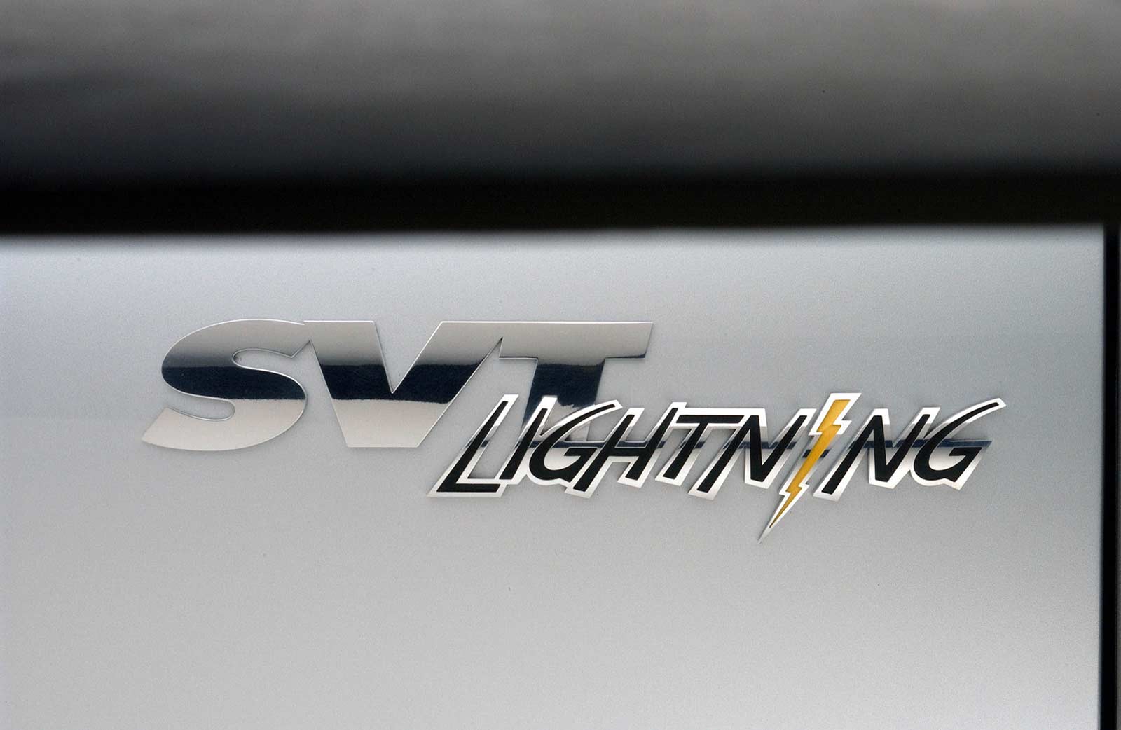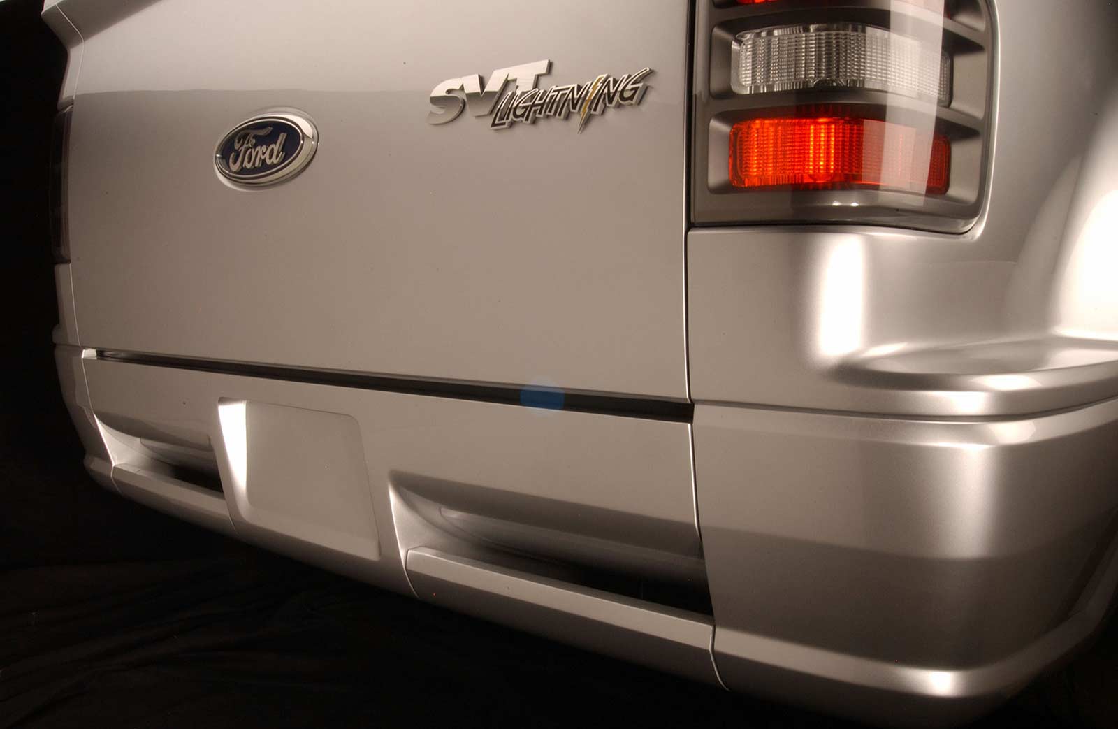The new SVT Lightning concept isn’t just built for speed off the line. It was designed to be quick out of the box, thanks to a new F-150 modular design architecture that’s geared to flexibility. That made it possible to show off the new SVT Lightning concept as a possible derivative of the new F-150 immediately at the truck’s public unveiling. “Modular design lends itself to special editions like this,” says Craig Metros, F-150 chief designer. “Changing details such the front grille, the side body panels and interior trim transforms the truck. The result is a specialized, high-performance model, far from being just a wheel-and-tire package.” The SVT Lightning concept is based on the new Regular Cab F-150 Flareside model, finished in Liquid Silver Metallic and dripping with performance character. In keeping with SVT Lightning tradition, the concept only has two doors. The rear access doors on the new Regular Cab F-150 are replaced on the concept with longer front doors and fixed B-pillars. Other SVT design cues include electro-luminescent gauges, side exhausts, clear taillights and round foglights.