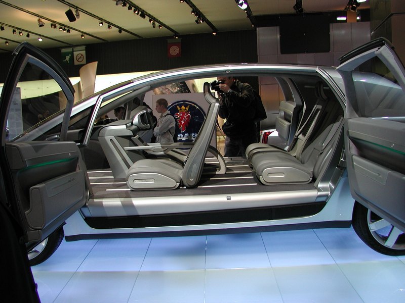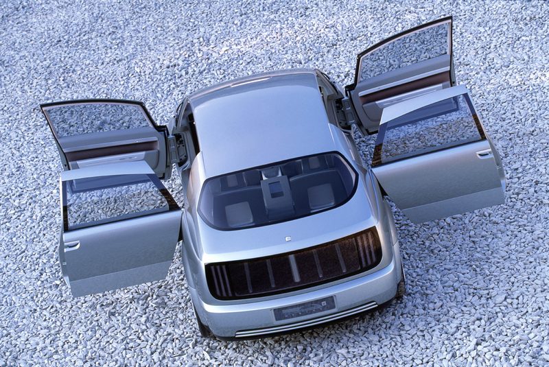 To show off this radically new architecture, the front and rear panels are made of transparent glass. Onlookers can see through the car from front to rear; the liberal use of glass and the absence of a hood also provide a greater visual command of the road for the driver. To reinforce this effect even the seat backs are open. There is no B-pillar between the front and rear doors. Drivers and passengers have greatly enhanced legroom.