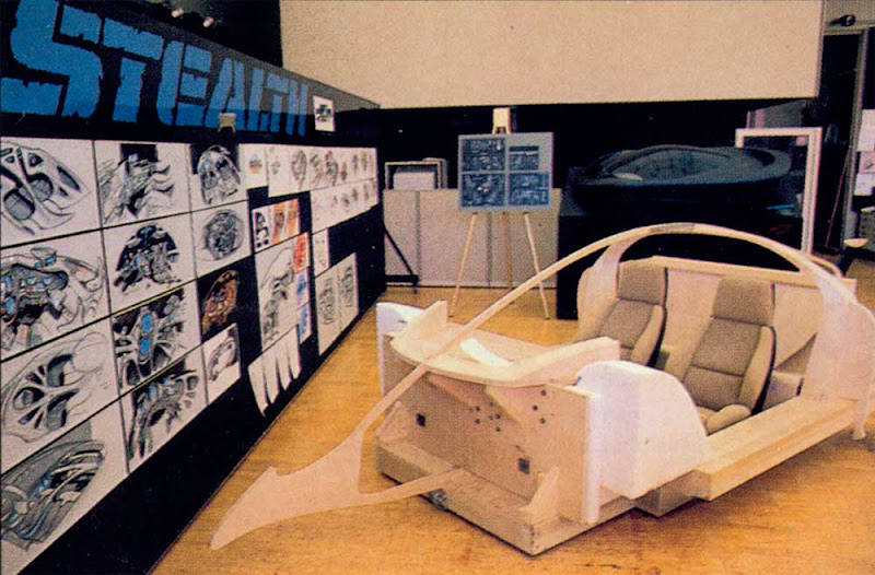 According to Automotive News, the SRV-1 loosely represented Group Lotus. Clark Lincoln, chief designer of Advanced Studio 2, said that it was known internally as the Stealth and designed to be the ultimate advanced two-seater sports vehicle. The car was proposed to have all sorts of electronic gadgetry, including sticks to steer the car, doubling as a shifters (somehow). Communications systems, voice-activated controls, heads-up display, and night vision. Whew. I’m missing the last page of the article so there might be more, I don’t know. The car is a really beautifully executed styling exercise, and influenced the design of the ’92 Camaro. Let’s just let it go at that. I do remember a fiberglass scale model of the car on display in the production studio hallway for quite a while. Like somehow it was supposed to inspire new frontiers in taillight bezel design. Nonetheless it was a gorgeous sculpture.