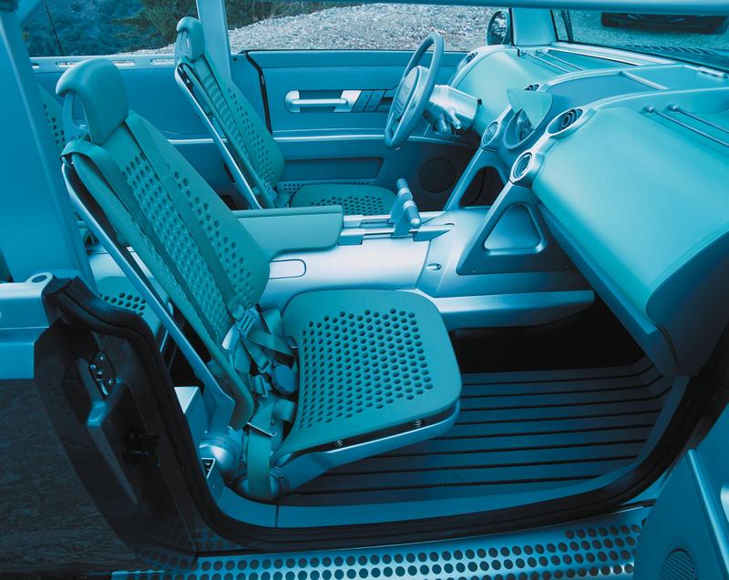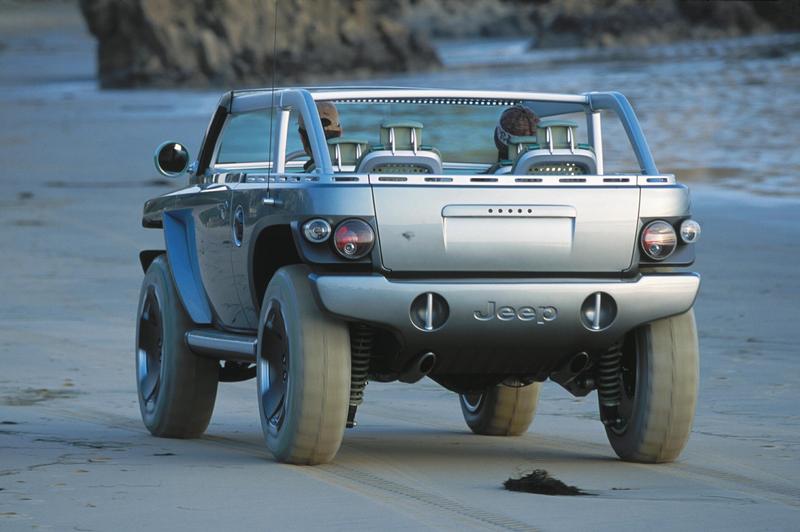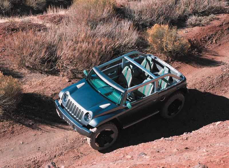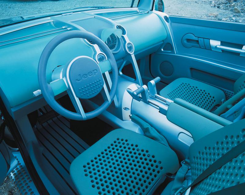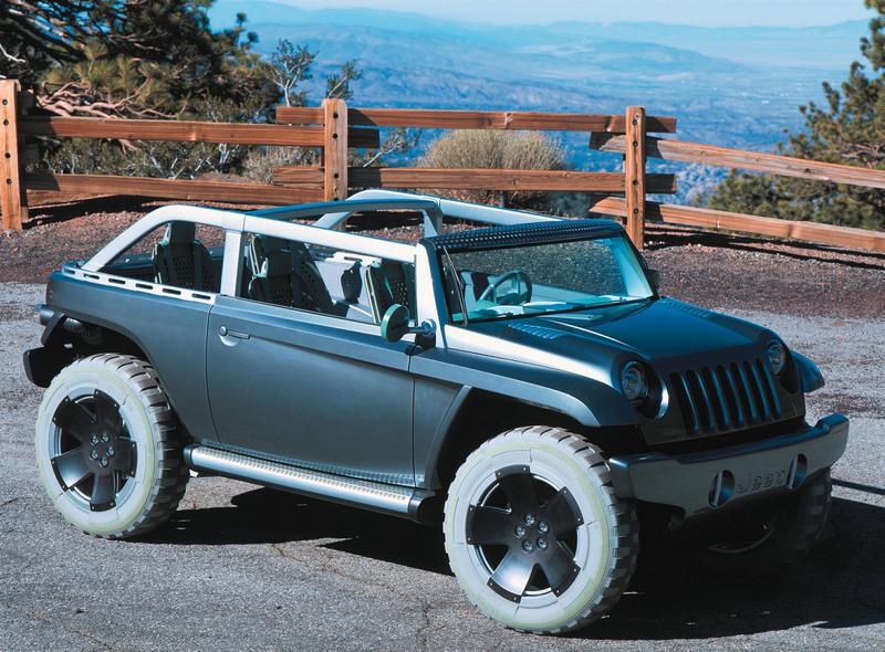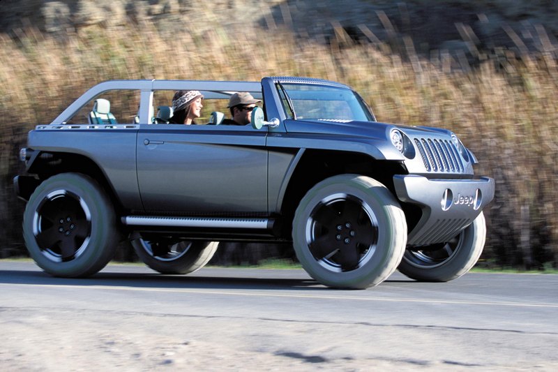 The Willys, unveiled at the 2001 North American International Auto Show in Detroit, features plastic body-technology, allowing for a radical approach to Jeep design while remaining true to the brand's characteristics.