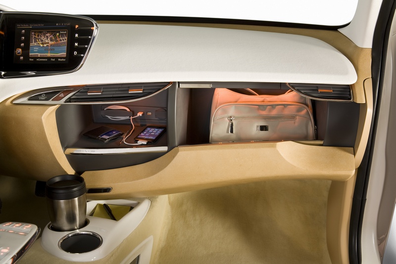 The extended cluster provides an intuitive way to personalize and regulate electronic information. The display to the right of the cluster pair makes menu selection a simple touch and flick. This information transfers to the nearby digital cluster to reprioritize information based on the driver’s hierarchy of needs. The connection is completed as the digital and the analog clusters interact. Close by, the seat-wing provides the most often used controls for HVAC and music, all within easy reach of both the driver and passenger.