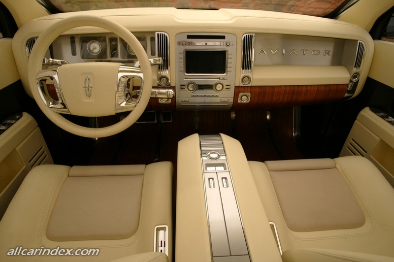 The symmetrical floating instrument panel exhibits a combination of brushed and brightly polished aluminum accents on the cluster, radio, navigation and climate controls, elongated vents and Lincoln star – adding jewel-like detail and contrast to the interior. The instrument panel also features a laser-inscribed "Aviator" vanity plate of polished aluminum above the glove box, again giving the Lincoln stamp of luxury.