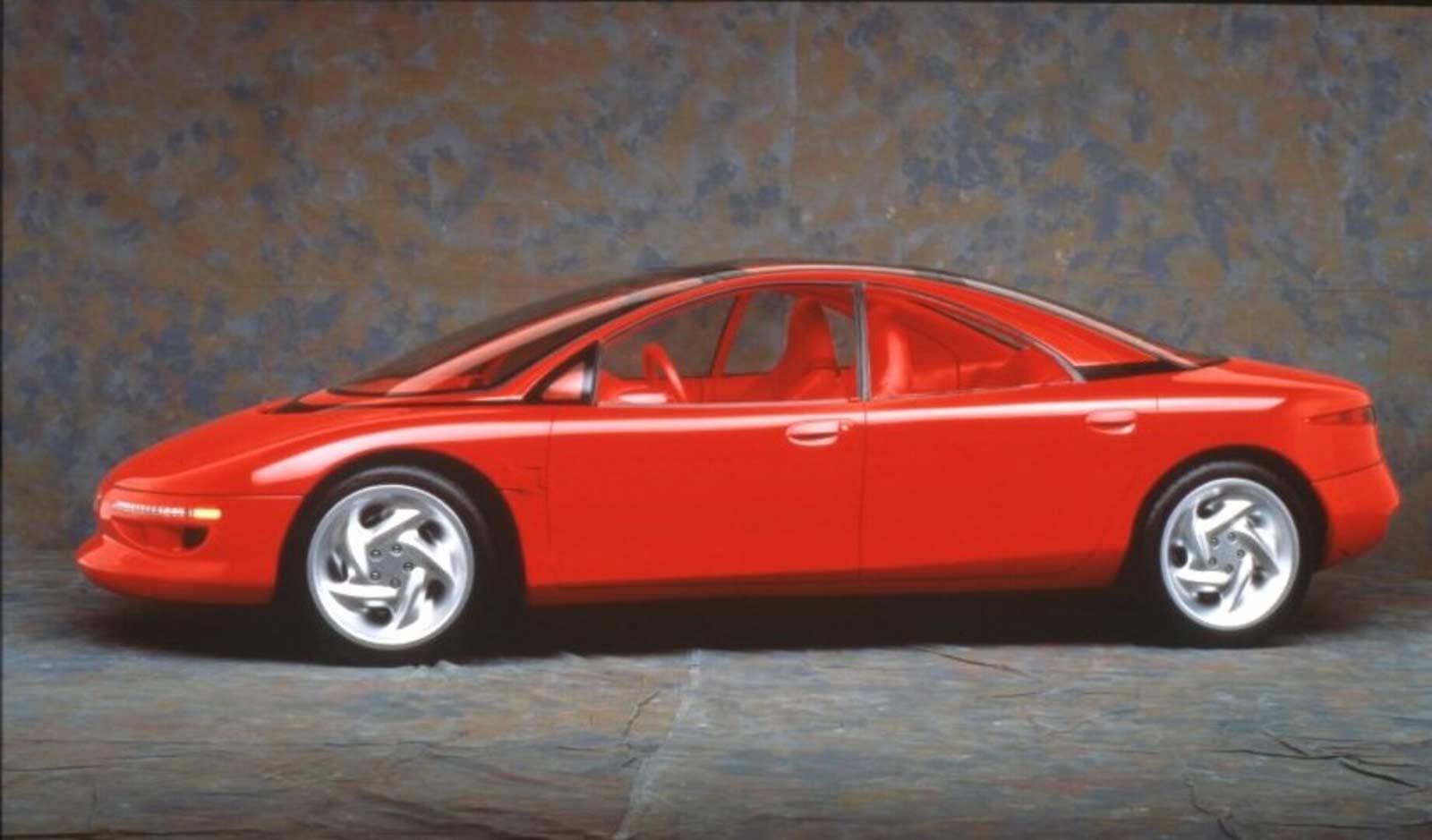 Also adding to the sleek design is a new light source development which utilizes fiberoptics for headlamps, taillamps and instrument panel lighting. This new technology provides taillamps with even lighting, eliminating hot spots. The car's sleek lines and aerodynamic efficiency are uncluttered by the traditional side-view mirrors; instead a rear-view television provides, information up front to the driver. Two color monitors are located beneath the windshield at each end of the instrument panel.