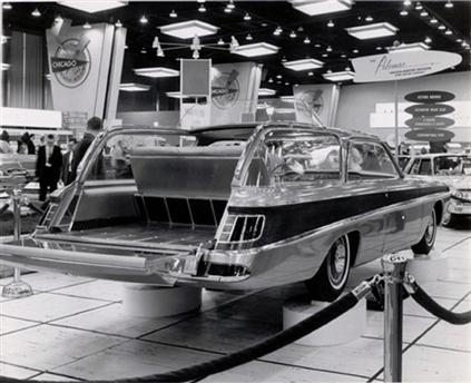 Mercury's Palomar two-door hardtop station wagon featured a roof with an opening rear section. When open, the rear seat rose and a small windshield popped up allowing the passengers to see over the roof. The concept car was named in honor of Mt. Palomar Observatory in California.