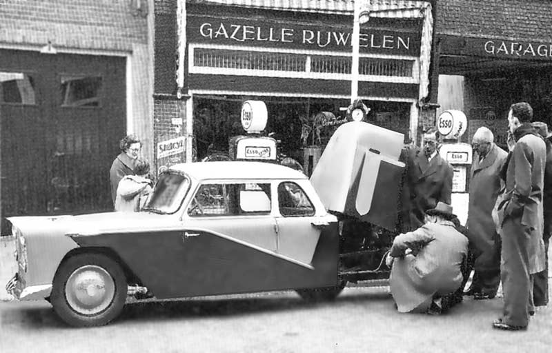 Jo Weijman, an inventive car enthusiast from Haarlem, Holland, built a unique homemade three-wheeler powered by a 400cc Ilo engine from a prewar Tempo. Working for a Ford dealer in Amsterdam, Weijman had easy access to Ford parts, which he used to construct the vehicle. Despite its creative design, the car was known for being unstable on the road, a challenge further compounded by the fact that Weijman didn’t have a driver’s license.
