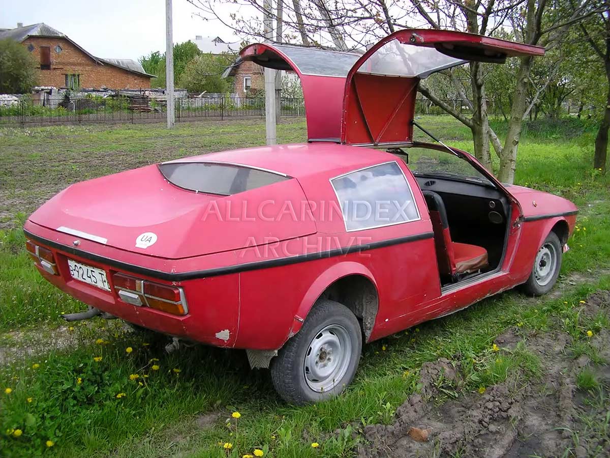 The car featured a Moskvich 412 engine with a 1.5-liter displacement, delivering 75 horsepower. It was paired with a 5-speed manual gearbox. The body was crafted from fiberglass, mounted on a tubular steel spatial frame, and included aluminum "gull wing" doors, adding a touch of sophistication and functionality.